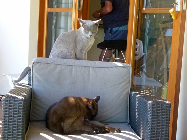 The two cats played in the garden all day. By late afternoon they were ready for a rest.